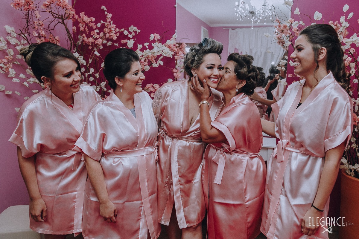 Aqui depende bastante do seu gosto, algumas noivas se sentem mais a vontade em se arrumar com as madrinhas, a mãe, a sogra, as amigas, todo mundo por perto, fazendo aquela festa e acalmando os nervos que estão a flor da pele